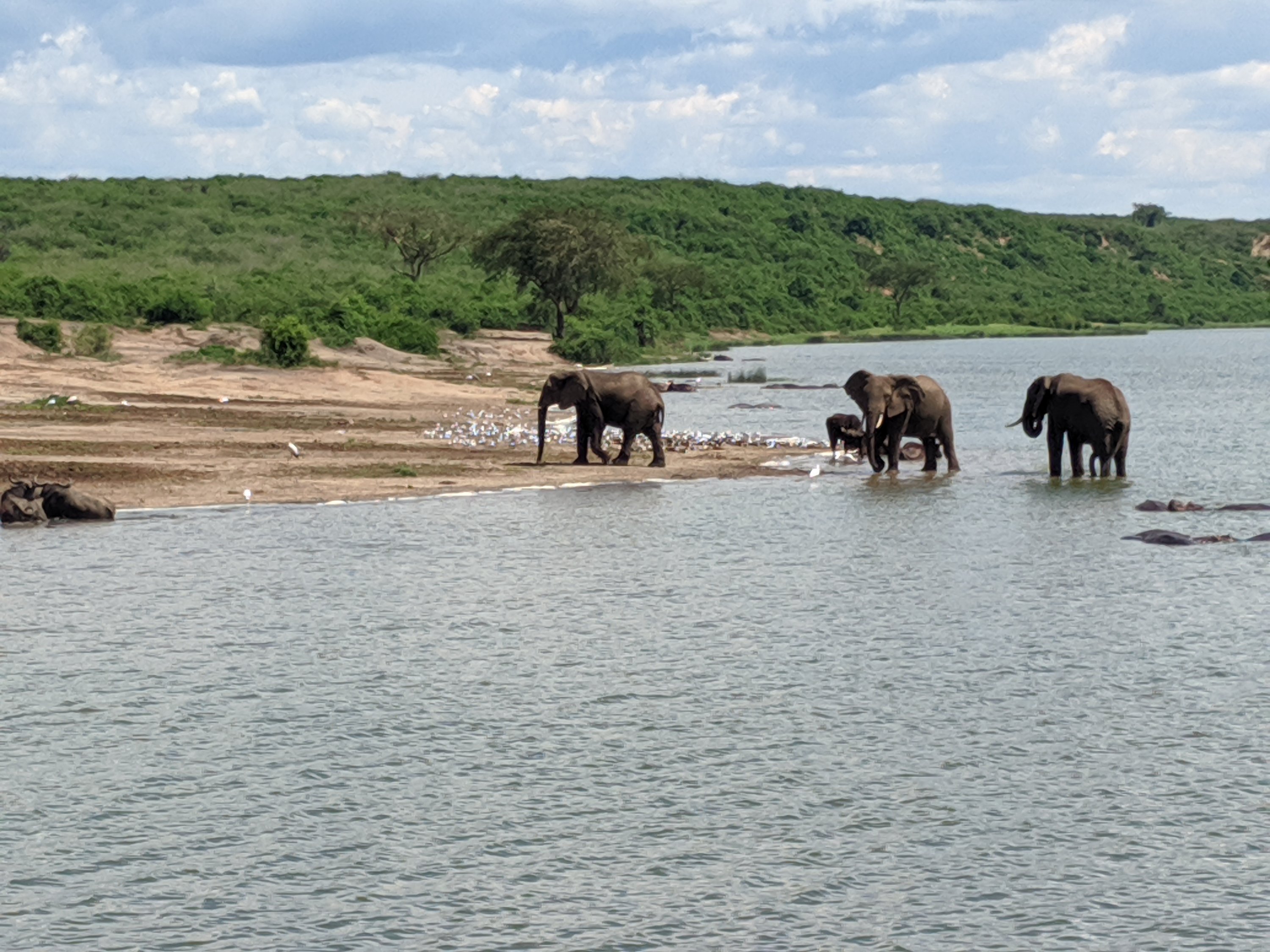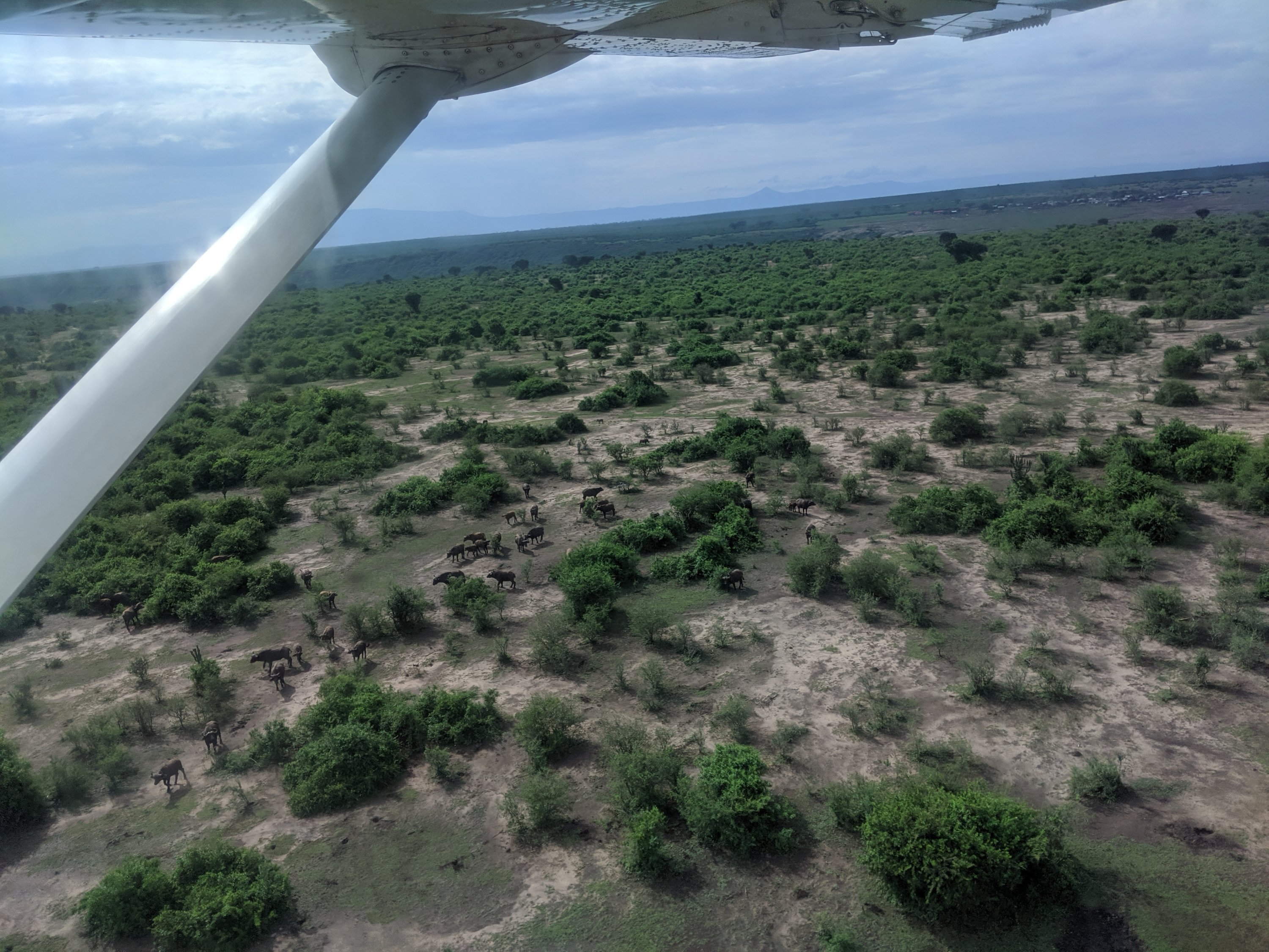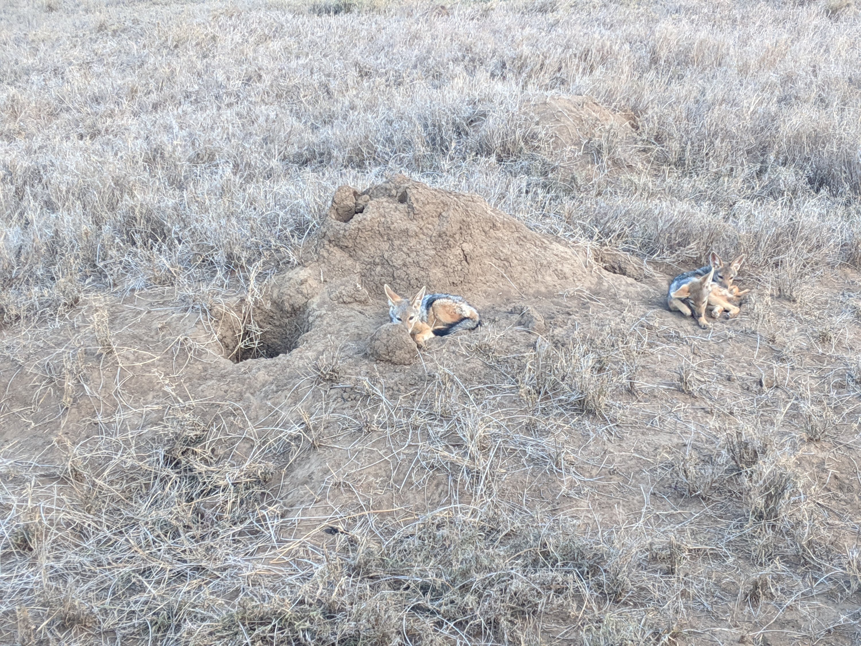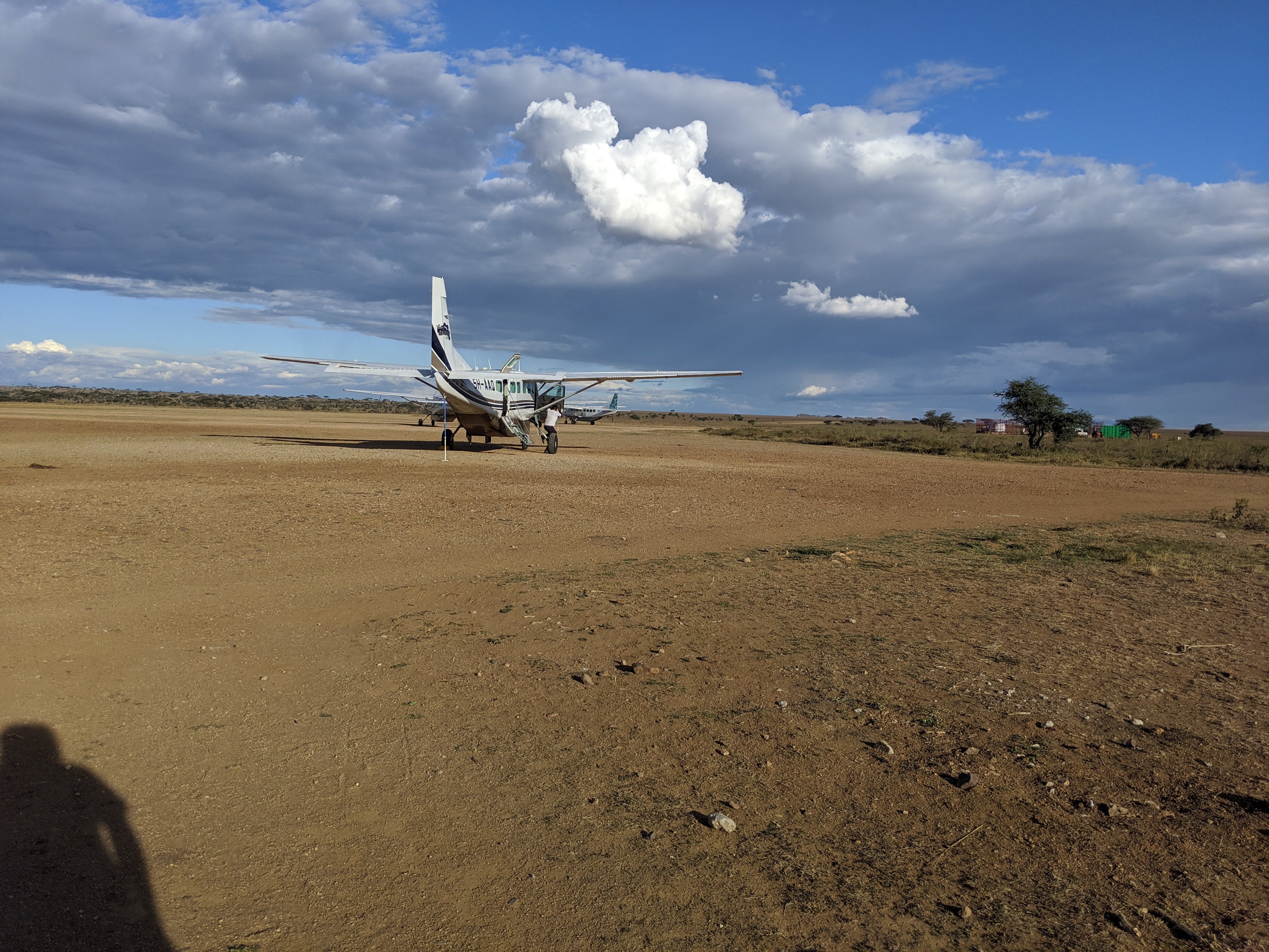 The day after we saw the chimps, it was time to leave Uganda for Tanzania. We got up early, as usual, for our flight from Kasese aerodrome to Entebbe. The air service to these far flung airstrips we’ve been going to is sort of like a shared air taxi service. There’s not really a schedule or a route until the day before when they work out what bookings they have, so it’s all a bit haphazard, though it does sound like its actually reliable. They exclusively use Cessna Carravans in an 11 passenger + 2 pilot configuration. Today we found out that they would take us from Kasese to Kihihi (basically the opposite direction of Entebbe) where they’d drop us off for about an hour while they went to Kisoro and came back to get us. Then we flew from Kihihi to Entebbe.Once there we took a whirlwind tour of the airport guided along by an employee of our next airline, which was sort of a private charter airline using a similar ad-hoc route system. Out and back in again, through security and immigration and customs and such. Then we walked out across the tarmac to our next Cessna Carravan.This time we flew from Entebbe to Kibale, Rwanda. From there, we went to Mwanza, Tanzania for immigration and customs into Tanzania. This was a shocking amount of paperwork for Ebola checking and some additional paperwork for something even though we already had our visas filled out and paid for ahead of time. Though everyone was actually very friendly and chatty.After we were all cleared for immigration (there were just four of us on the plane) we went on the drop off the other two at Kogatende airstrip in the north part of Serengeti park, just this side of Kenya. Finally we were on our way to our airstrip, arriving about 5 pm. We were met by our ranger and taken to our rather amazing “tent” at “camp.” The safari vehicle even came equipped with beers. On our way we saw a small family of jackal cubs right by the road, and a lion!After a week without reliable power and internet, this place was a revelation.