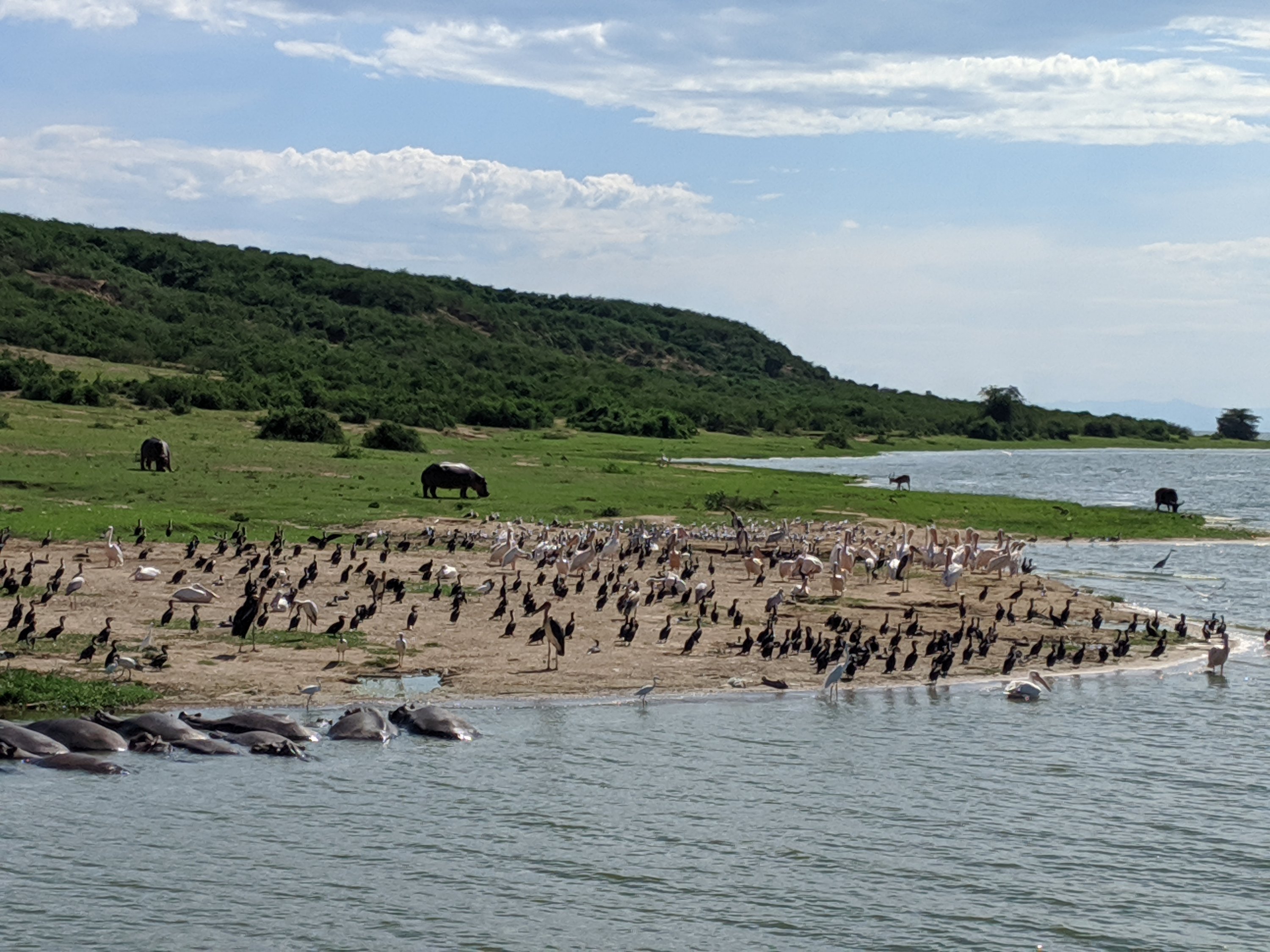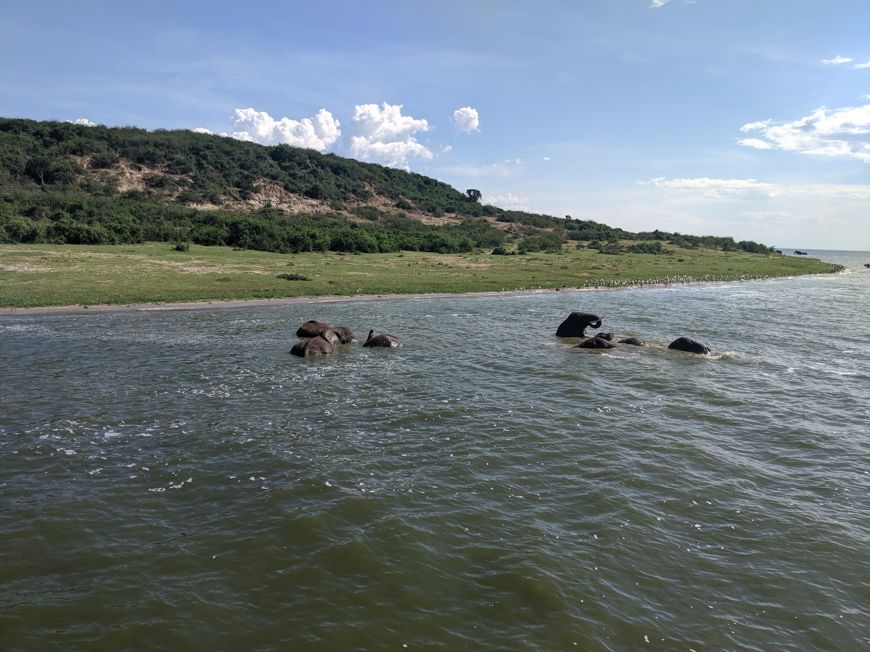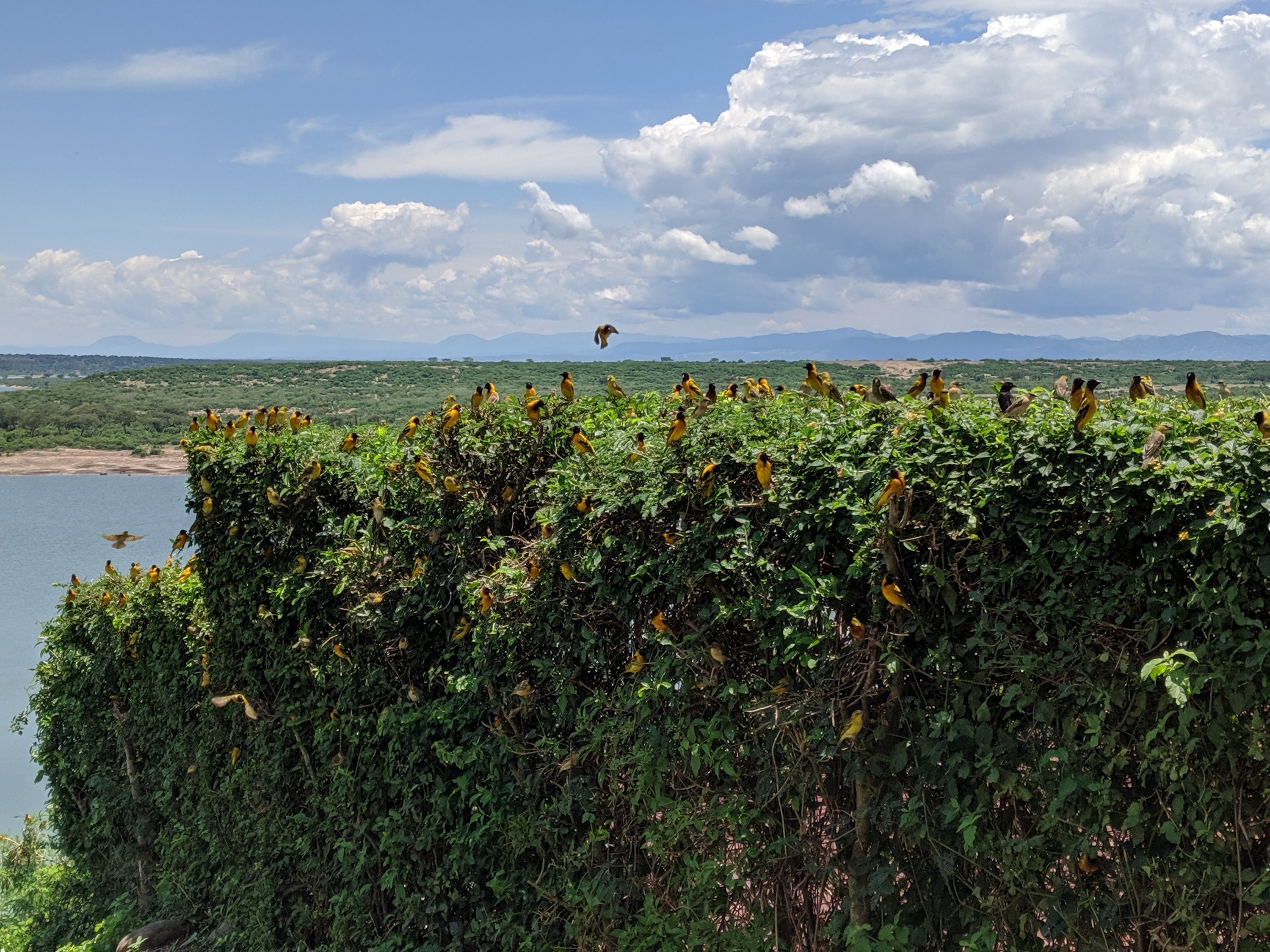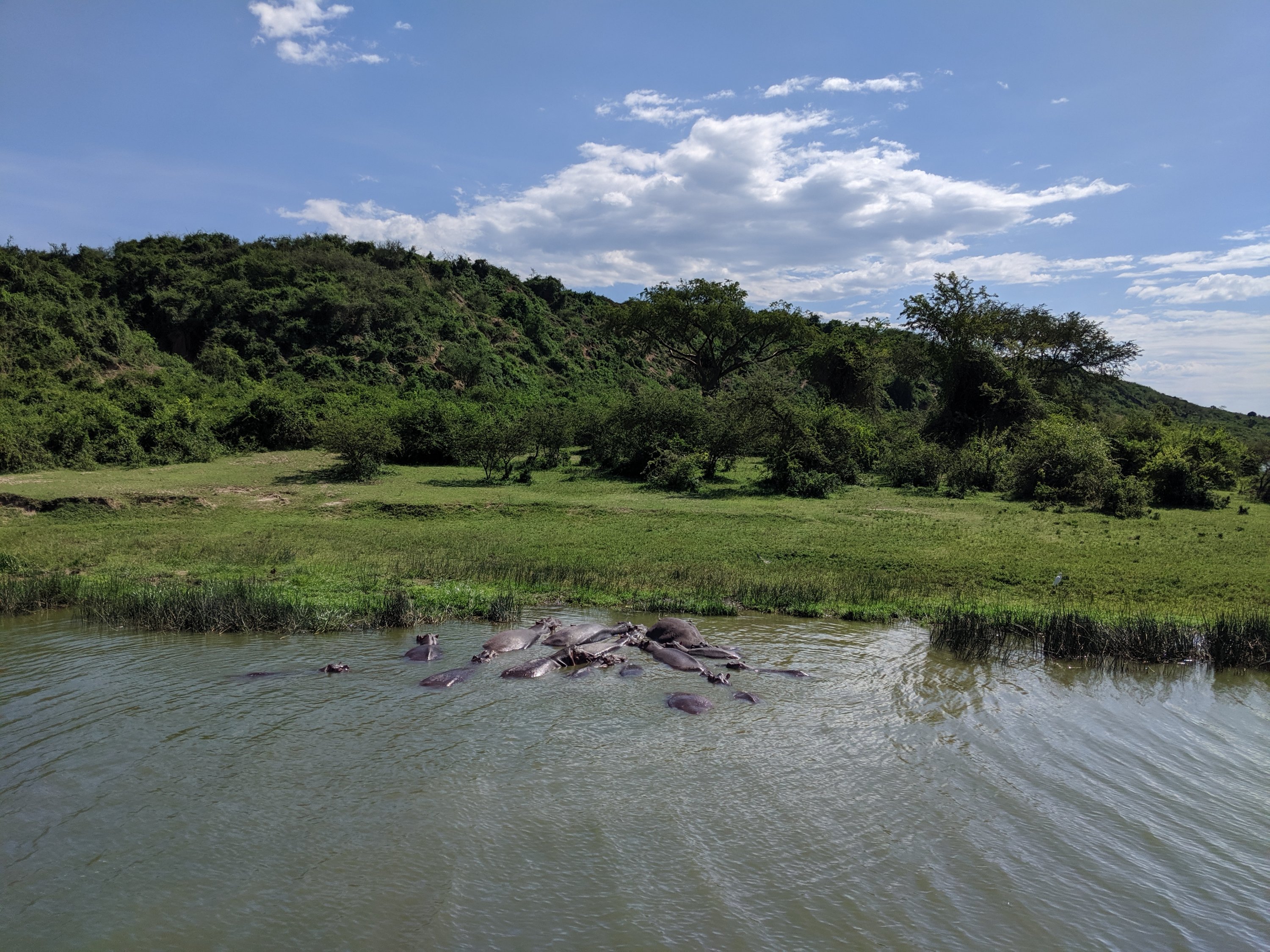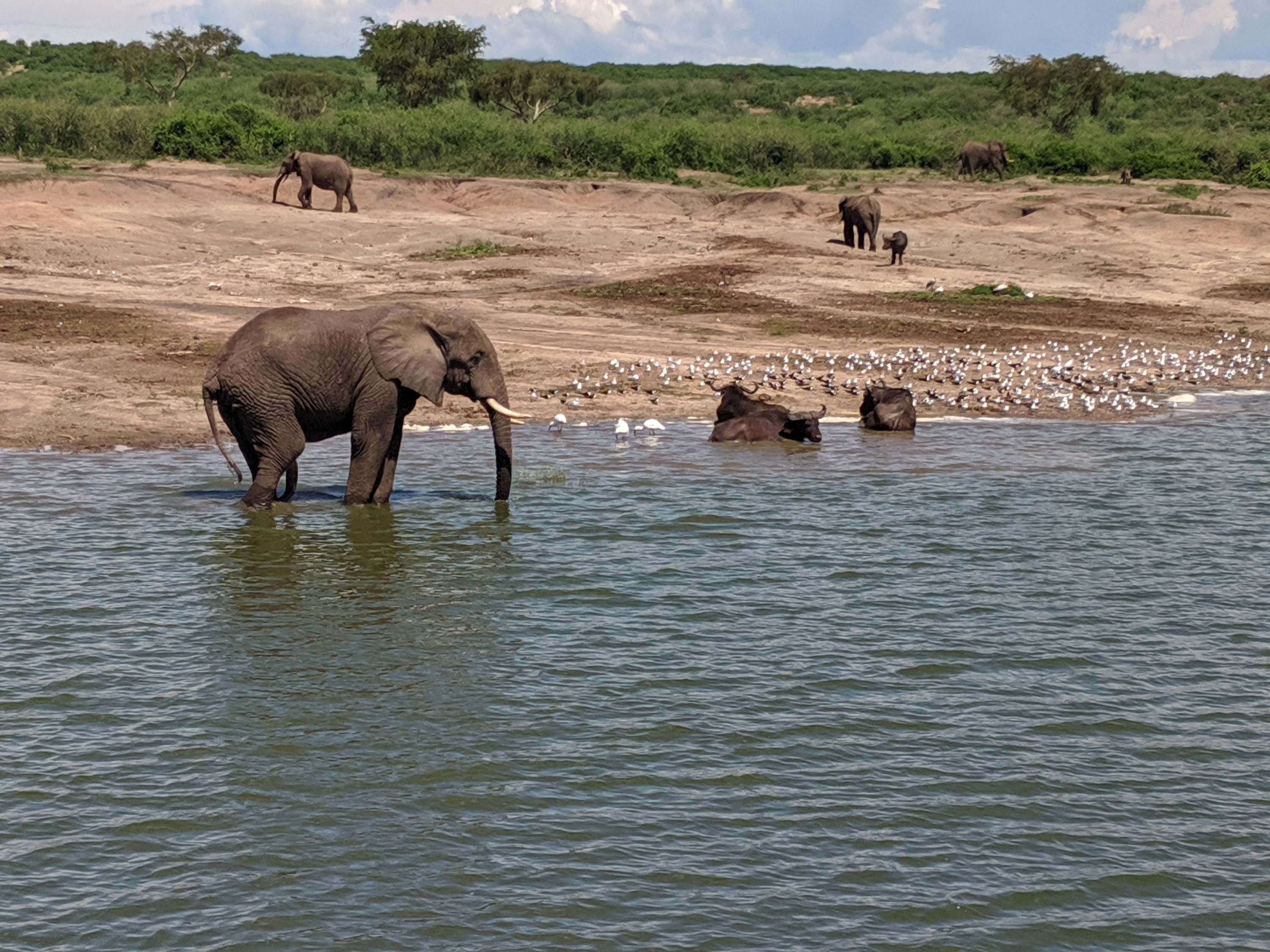 The day after we saw the chimps, it was time to leave Uganda for Tanzania. We got up early, as usual, for our flight from Kasese aerodrome to Entebbe. The air service to these far flung airstrips we’ve been going to is sort of like a shared air taxi service. There’s not really a schedule or a route until the day before when they work out what bookings they have, so it’s all a bit haphazard, though it does sound like its actually reliable. They exclusively use Cessna Carravans in an 11 passenger + 2 pilot configuration. Today we found out that they would take us from Kasese to Kihihi (basically the opposite direction of Entebbe) where they’d drop us off for about an hour while they went to Kisoro and came back to get us. Then we flew from Kihihi to Entebbe.Once there we took a whirlwind tour of the airport guided along by an employee of our next airline, which was sort of a private charter airline using a similar ad-hoc route system. Out and back in again, through security and immigration and customs and such. Then we walked out across the tarmac to our next Cessna Carravan.This time we flew from Entebbe to Kibale, Rwanda. From there, we went to Mwanza, Tanzania for immigration and customs into Tanzania. This was a shocking amount of paperwork for Ebola checking and some additional paperwork for something even though we already had our visas filled out and paid for ahead of time. Though everyone was actually very friendly and chatty.After we were all cleared for immigration (there were just four of us on the plane) we went on the drop off the other two at Kogatende airstrip in the north part of Serengeti park, just this side of Kenya. Finally we were on our way to our airstrip, arriving about 5 pm. We were met by our ranger and taken to our rather amazing “tent” at “camp.” The safari vehicle even came equipped with beers. On our way we saw a small family of jackal cubs right by the road, and a lion!After a week without reliable power and internet, this place was a revelation.