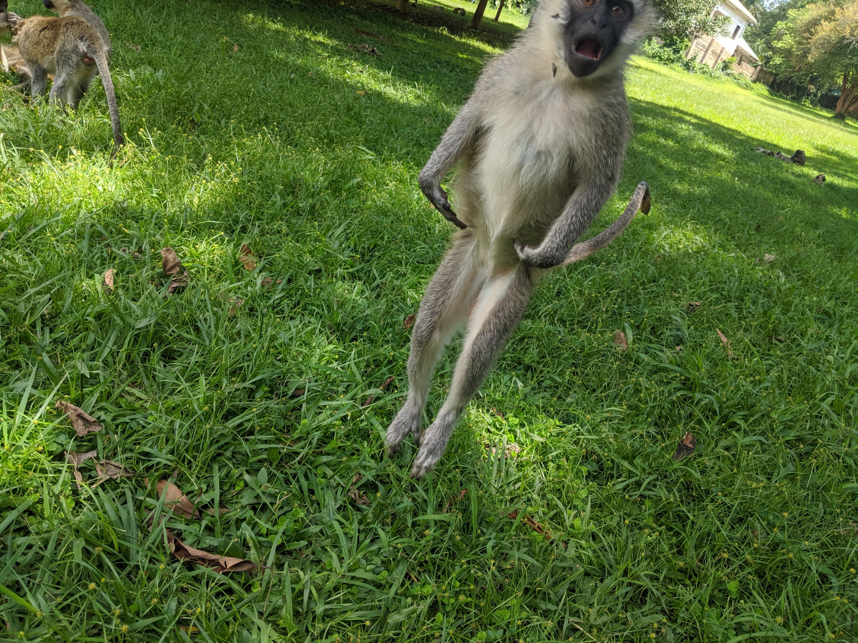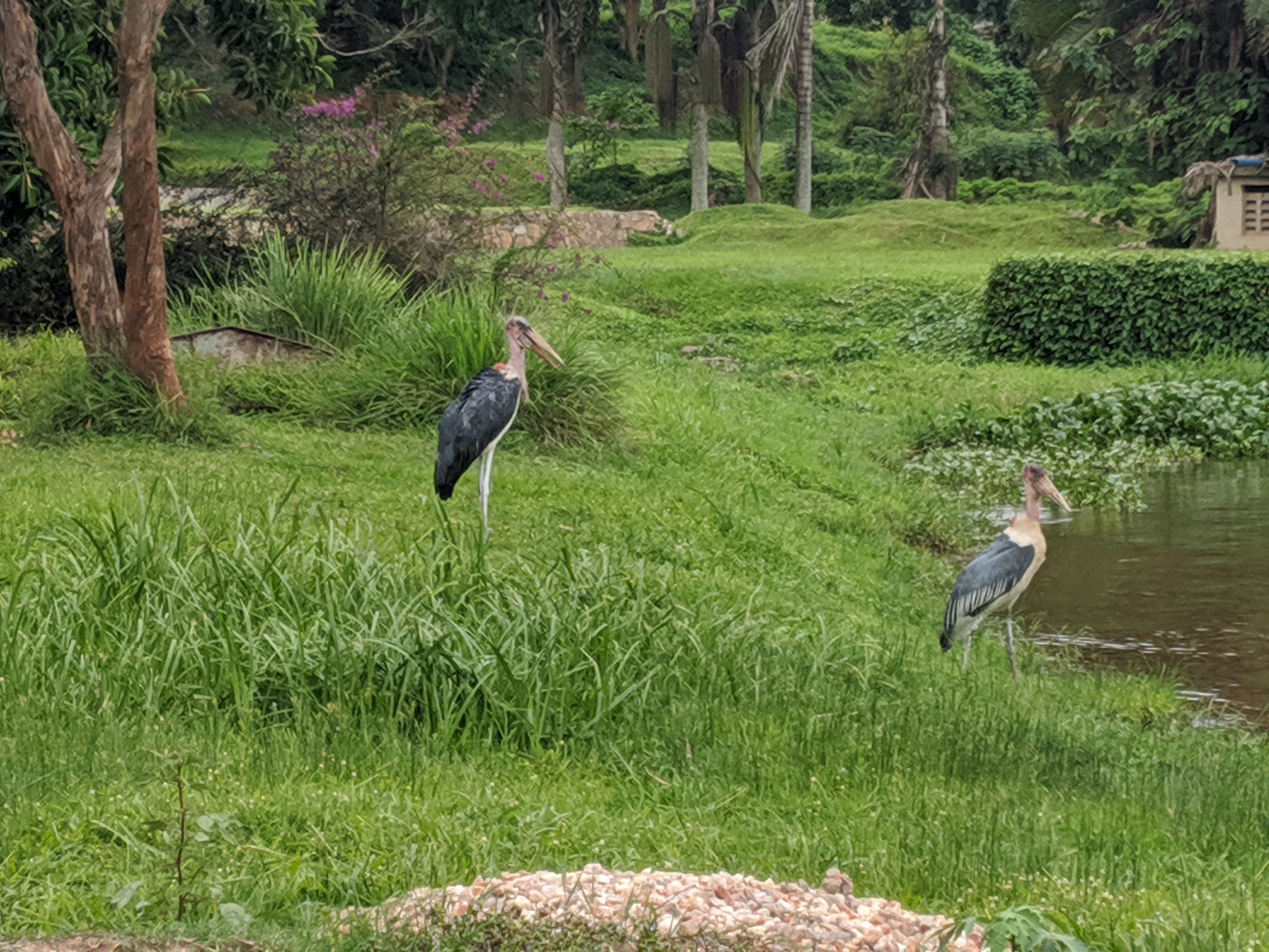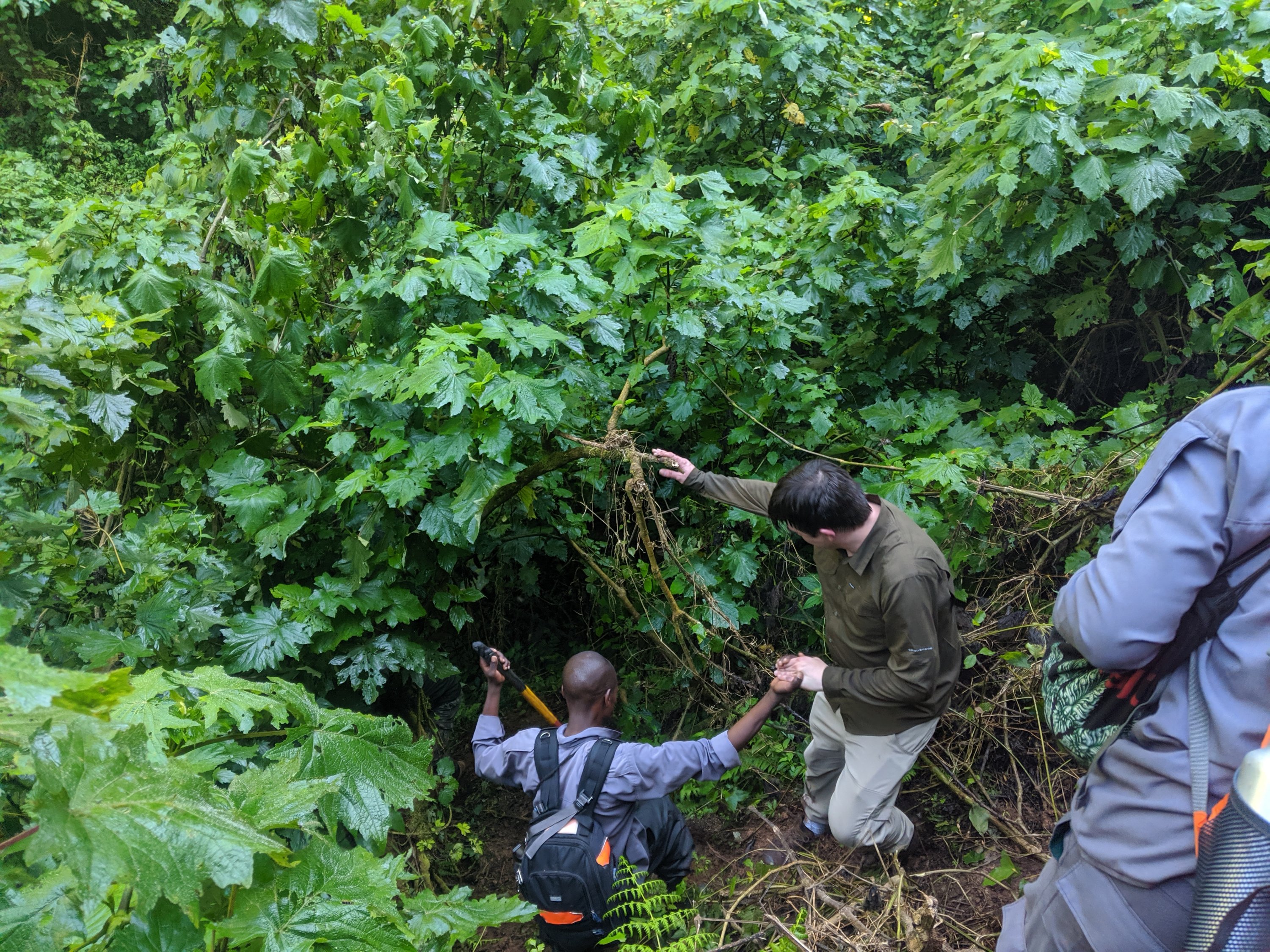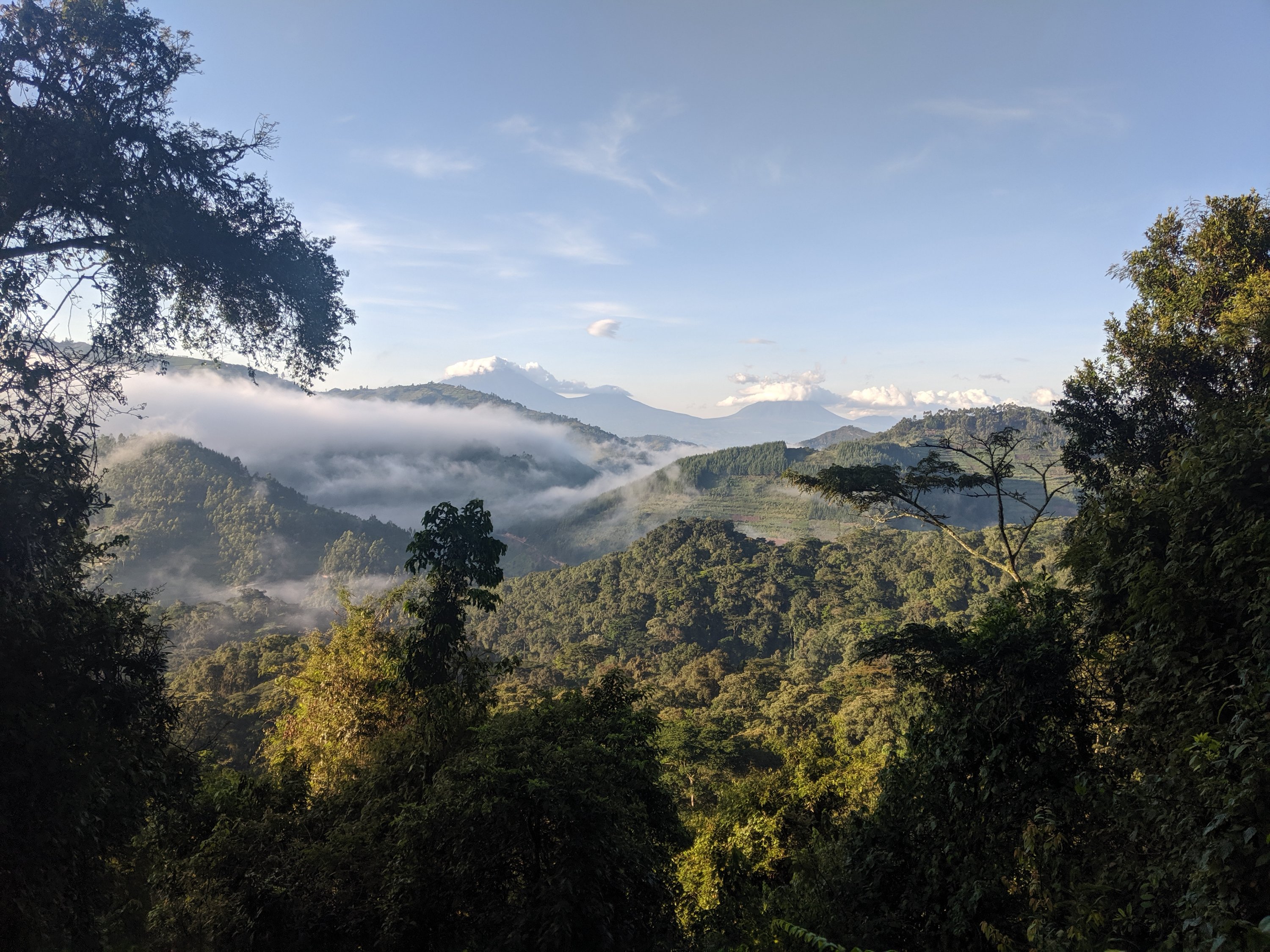 Today we did our Gorilla Habituation. Boy were we not ready for that. We met our Ranger, porters, and trackers at dawn and took off hiking. One hour in we’re a little winded, it’s at 6000 feet, and then our tracking began. We dove off trail down an incredibly steep ravine, clinging to plants, roots, and our porters as we plunged down. The porters weren’t there so much to carry our stuff, rather to push and pull us up and down the mountains. Then finally at the bottom, we’re told we found their trail from two days ago, and the grueling hike continues. Three hours later of going up and down the ravine, covered in ant bites, mud, and plant bits, we’re told we’re there. No sign to any of us, seems like all the other jungle we scrambled through, then we see them. A family of Gorillas sitting in the shade eating leaves, the young playing in the branches. It was amazing. They were so calm if our presence, one of the little ones came crashing down by Matty, eyes so curious. We started with that part of the group for awhile, following them as they moved through the jungle grazing on plants. There ended it being 5 babies who would periodically get in giant wrestling matches. Then we encountered the silver back. Our Ranger and the beginning of the hike and periodically throughout kept saying “Don’t run”. Until that point there hadn’t seemed a reason for the advice. The silver back tore out of the brush with no warning, roaring and charging by. All of us, trackers, Rangers, and tourists flinched back, and then he was gone. We learned later that a day before he had grabbed and bitten someone. After awhile, he got more comfortable with us and walked through to go get one of the females, leading the family away. As we followed, he would occasionally roar but didn’t rush us again. Then we saw the alpha silverback. He was between 400 to 440 lbs and surprisingly shy. He neither roared or tried to keep the rest of the family away. He sat, relaxed, snacked, and in general ignored us. We got to see two of the babies one last time, playing on the bushes and our time was up. It was magical, hard to go. They are truly amazing creatures, we were in awe. Finally the long hike back out of the jungle without the goal of gorillas to sustain us. At the end of that slippery vertical trek, we had hiked 10 miles of dense jungle.