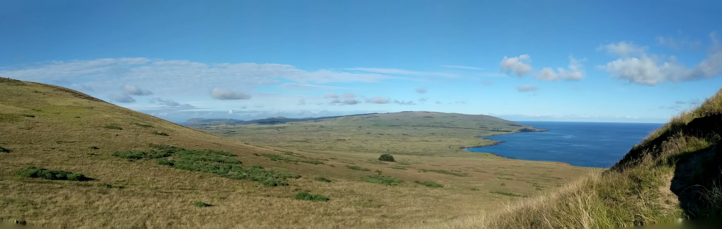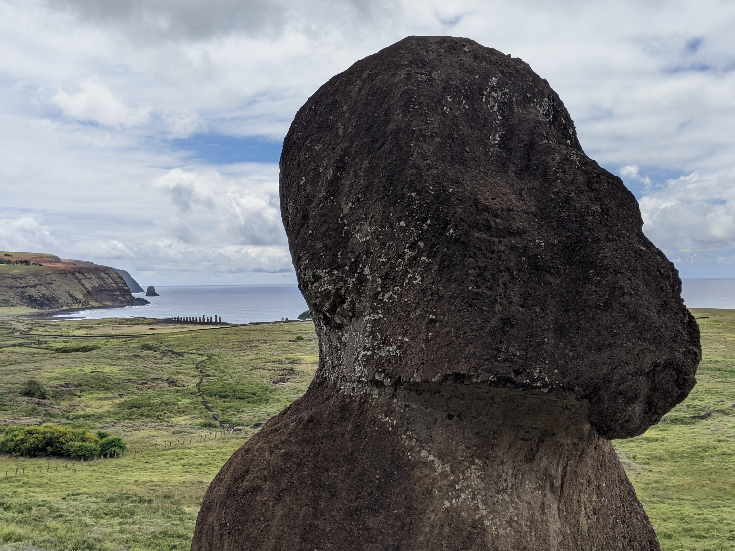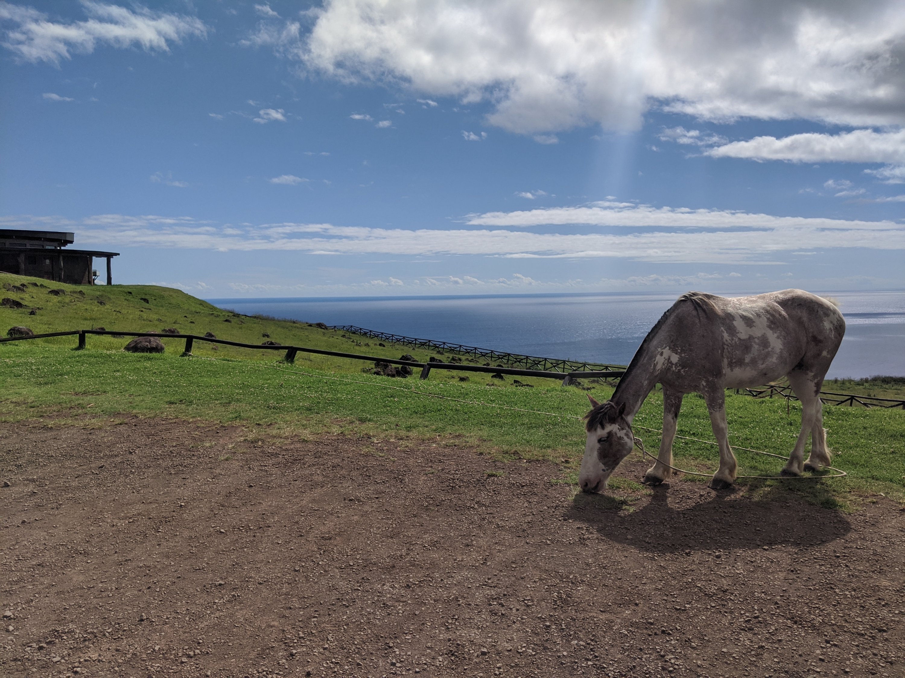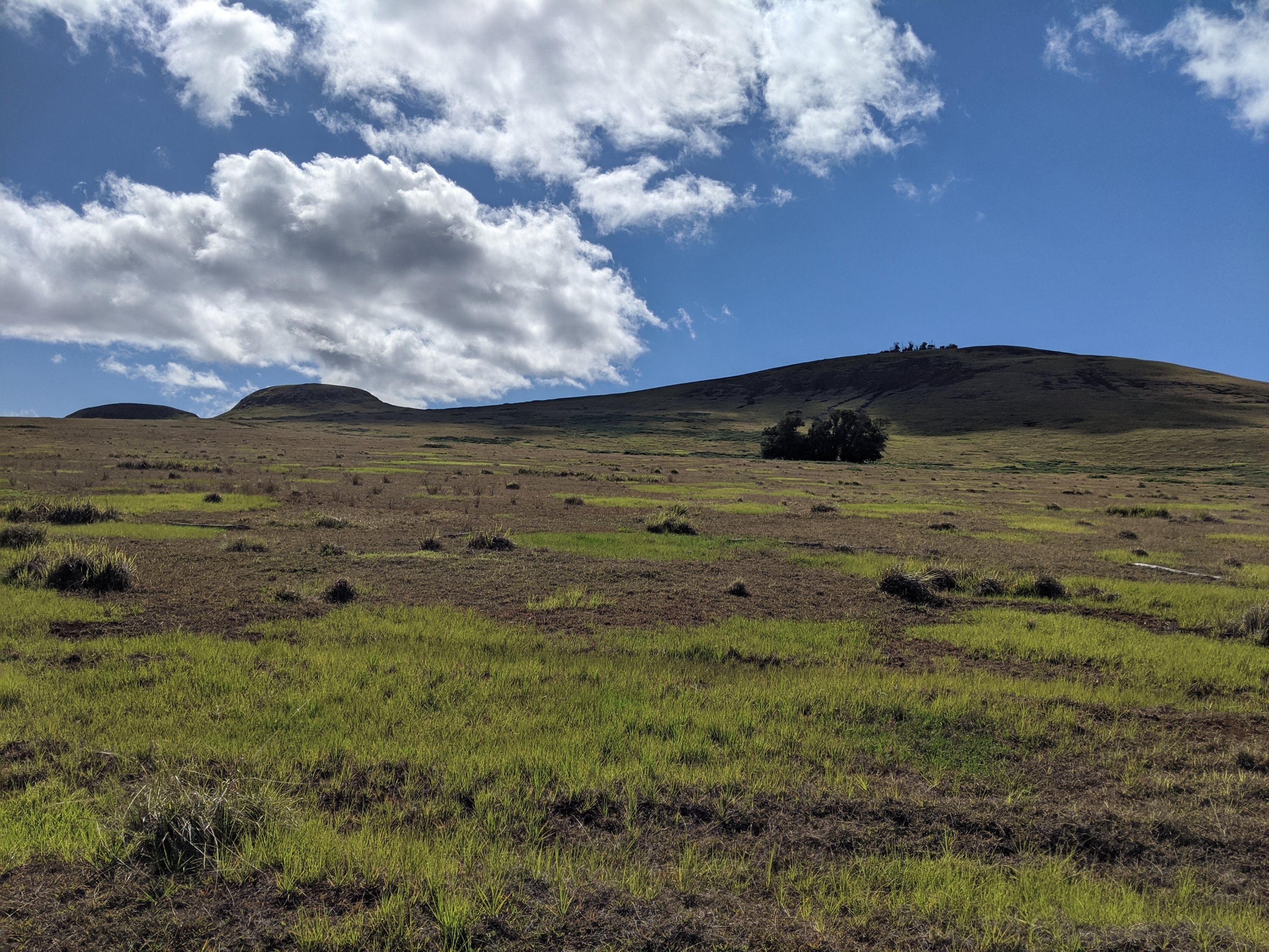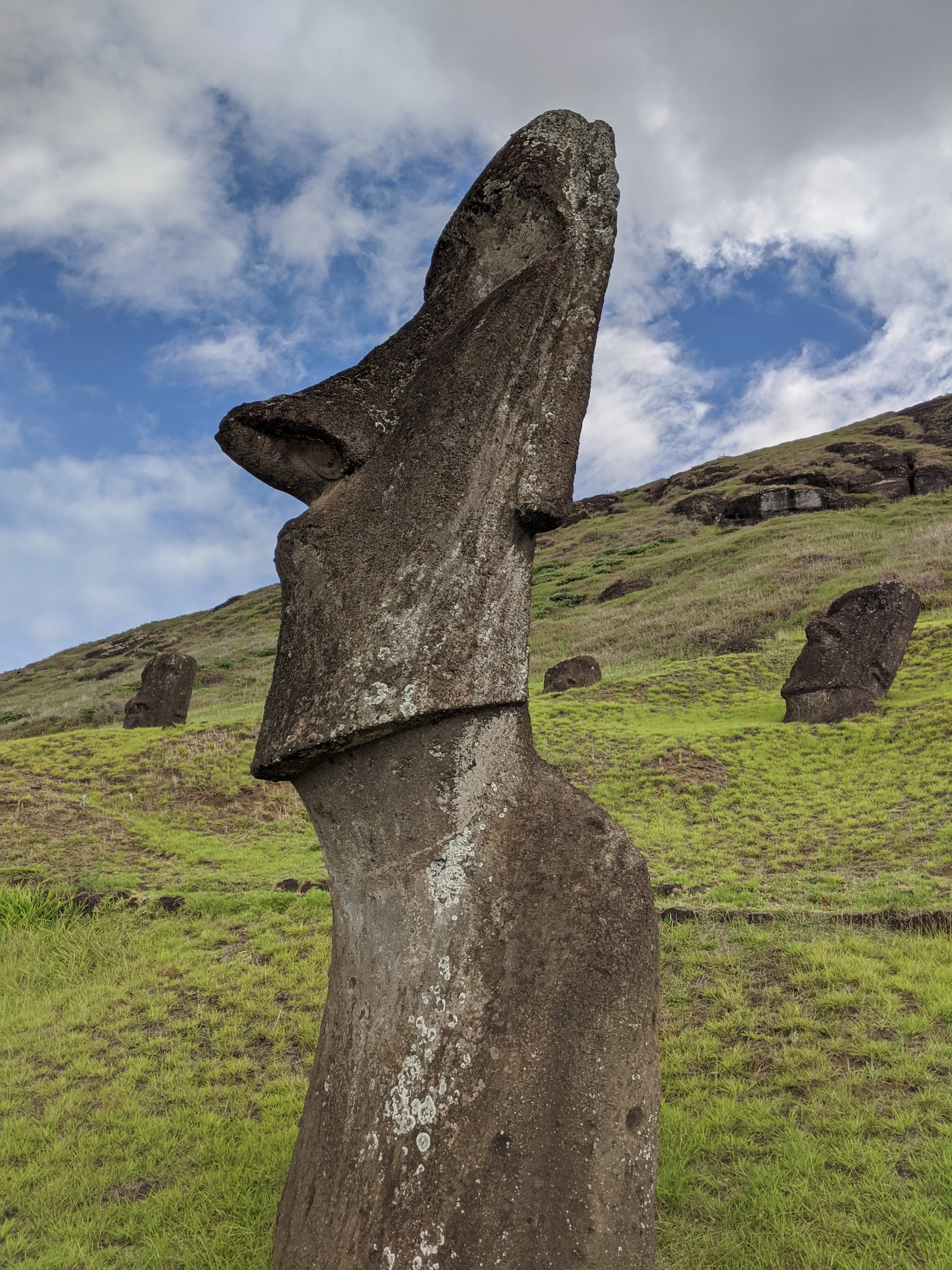 This morning we got up at half past five and took a ride out to Tongariki. It’s the big platform with 15 moai that is on the eastern shore, perfect for sunrise. We got there while it was still dark, found a small hill and waited. And waited. Waited. Finally colors splashed the clouds and we saw the sun lift up between the moai. It was quite pretty. We only ran into two people there that we knew, haha. It’s very odd being in foreign places and knowing people. This island is such a calm and relaxed place. Wild herds of well fed cows and horses roam a landscape dominated by the moai. Chicken are everywhere, constantly pecking and chatting. Super friendly wild dogs run around in packs having a grand time and running up to the humans when they want some love. This brief moment of island life was lovely.
