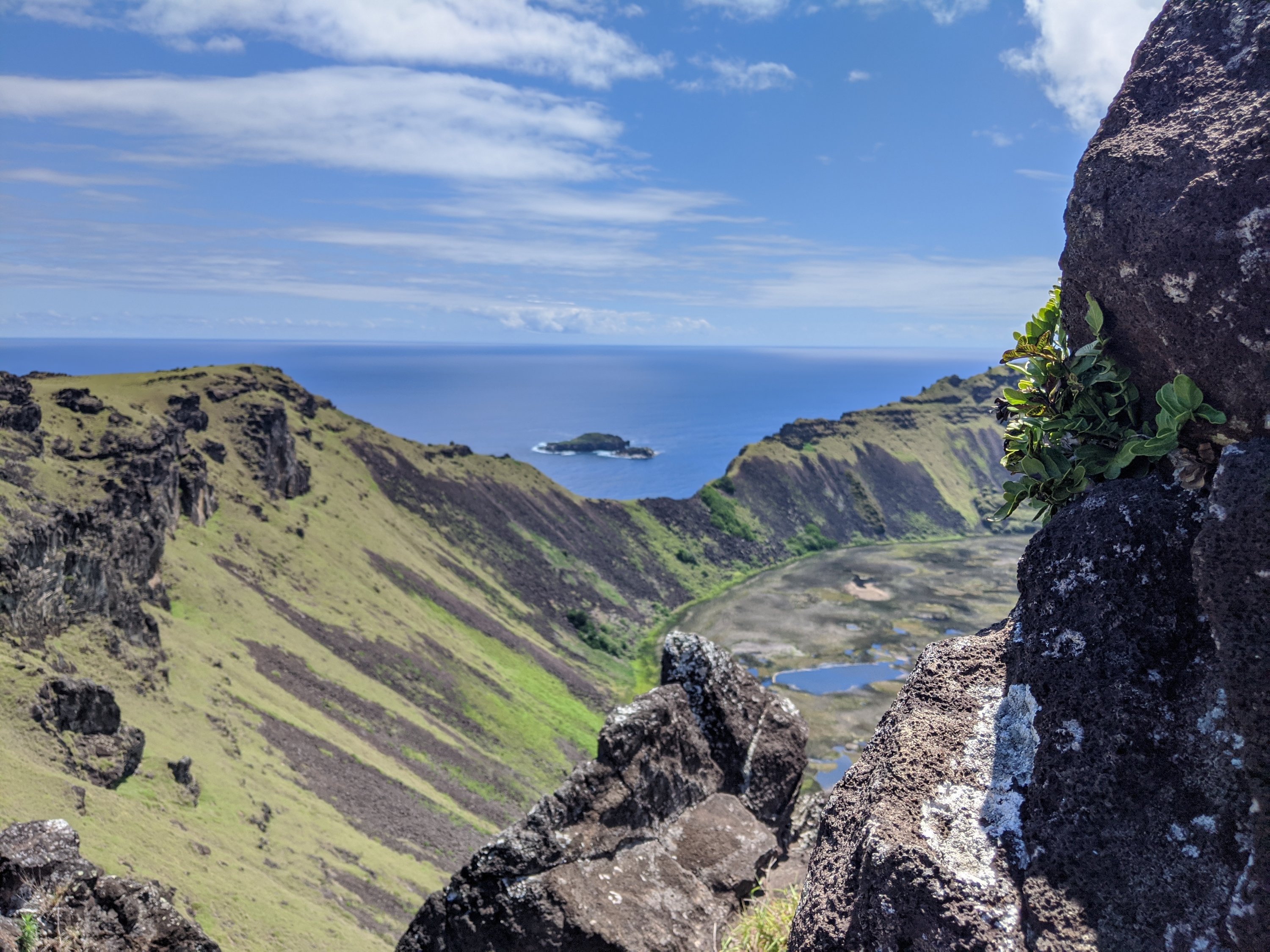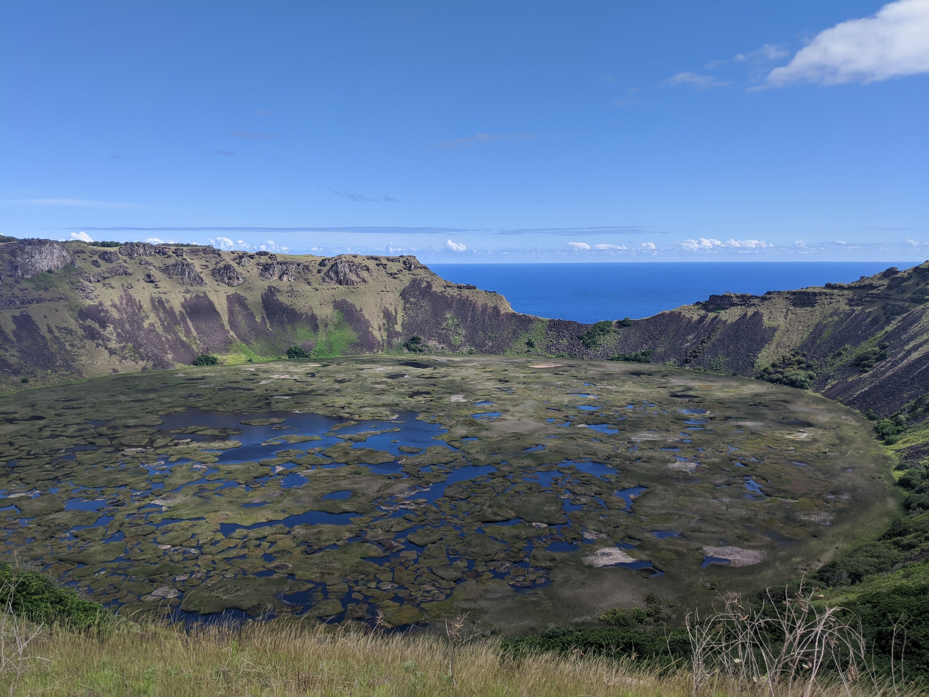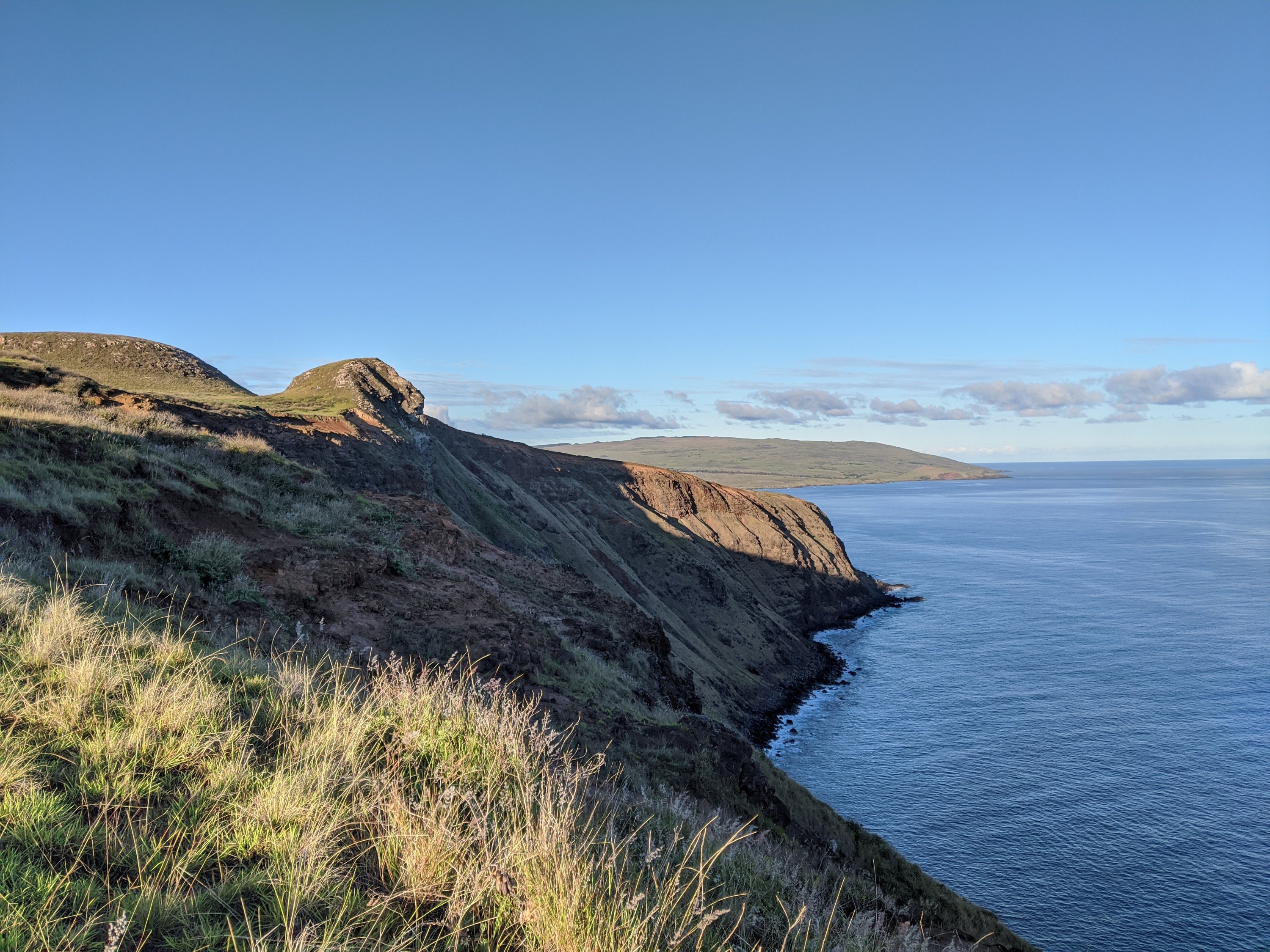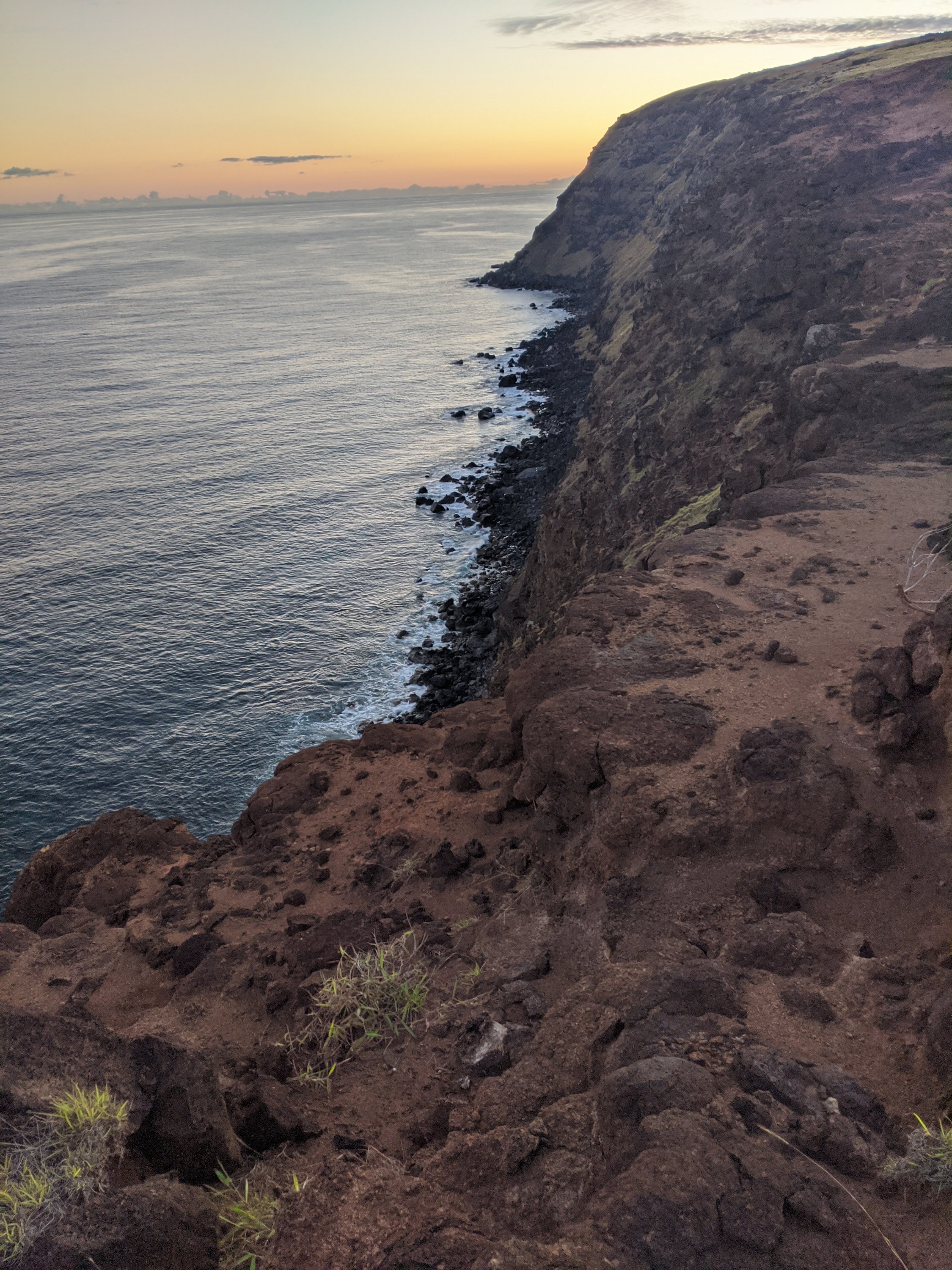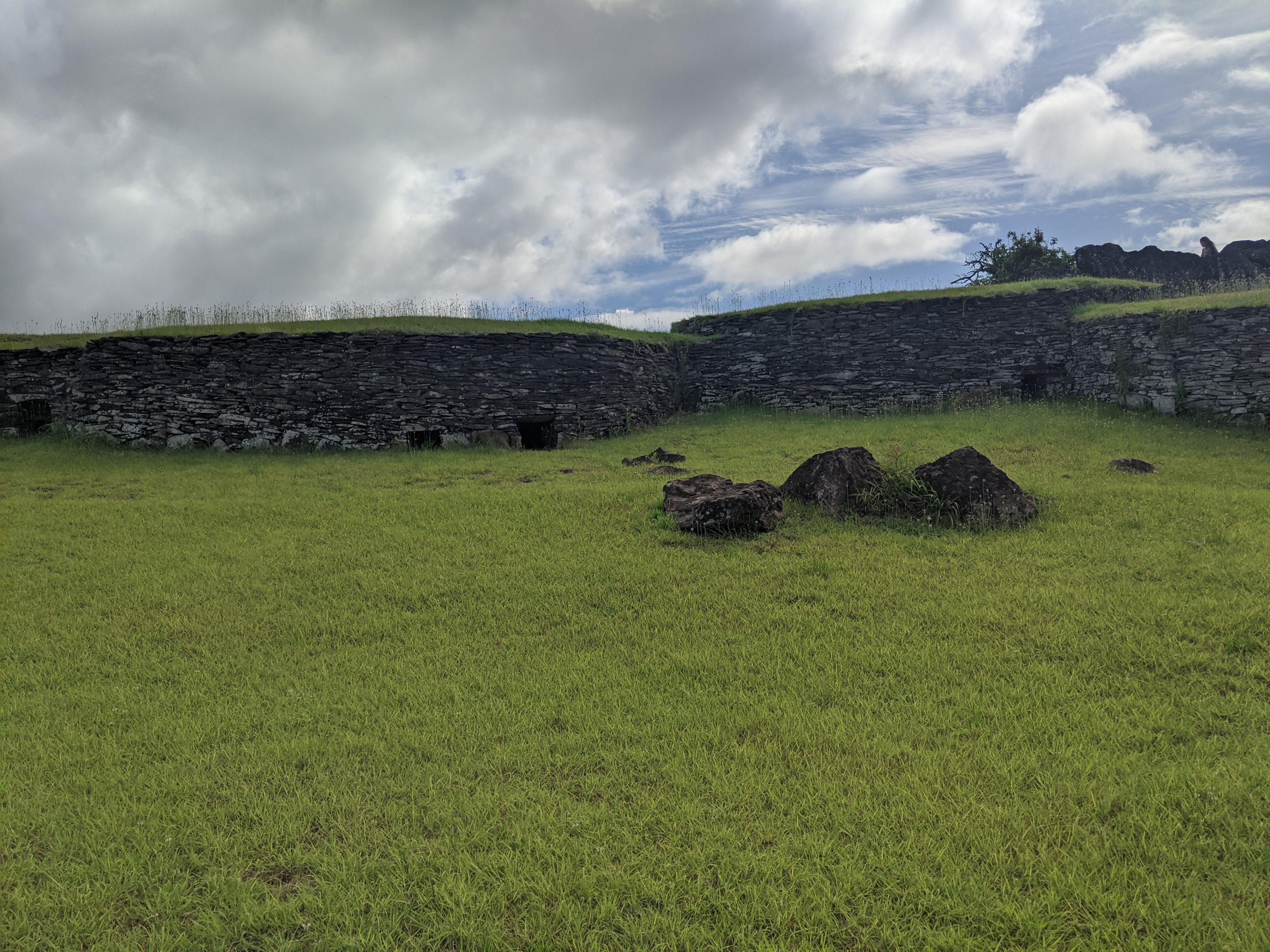 This morning we got up at half past five and took a ride out to Tongariki. It’s the big platform with 15 moai that is on the eastern shore, perfect for sunrise. We got there while it was still dark, found a small hill and waited. And waited. Waited. Finally colors splashed the clouds and we saw the sun lift up between the moai. It was quite pretty. We only ran into two people there that we knew, haha. It’s very odd being in foreign places and knowing people. This island is such a calm and relaxed place. Wild herds of well fed cows and horses roam a landscape dominated by the moai. Chicken are everywhere, constantly pecking and chatting. Super friendly wild dogs run around in packs having a grand time and running up to the humans when they want some love. This brief moment of island life was lovely.