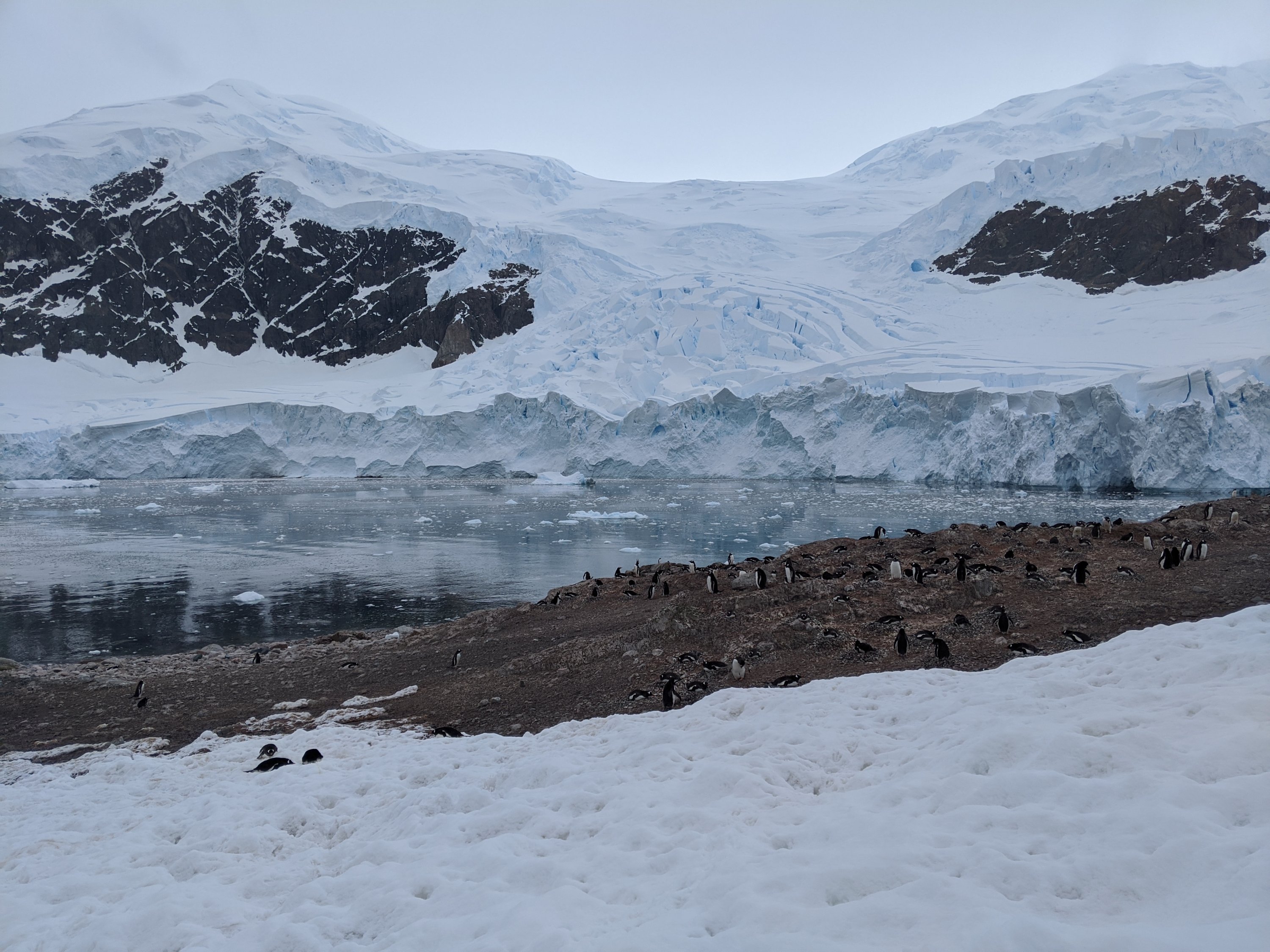 Neko Harbor is home to a giant calving glacier and a Gentoo penguin colony. We visited it in the afternoon and landed on a steep sloped hill covered in penguins. We hiked around the penguins toward the glacier and got to see penguin highways where the penguins have tramped down the in snow and made lots of little paths for themselves. It was super cute. While loitering there watching penguin antics a giant ice berg calved off the glacier creating a thunderous crack. It plunged into the sea, spinning and shedding as it tried to find equilibrium, creating a large wave that knocked the a zodiac off the beach. It was magnificent. The penguins didn’t notice in the slightest. We stayed there watching the process happen again and again in awe.