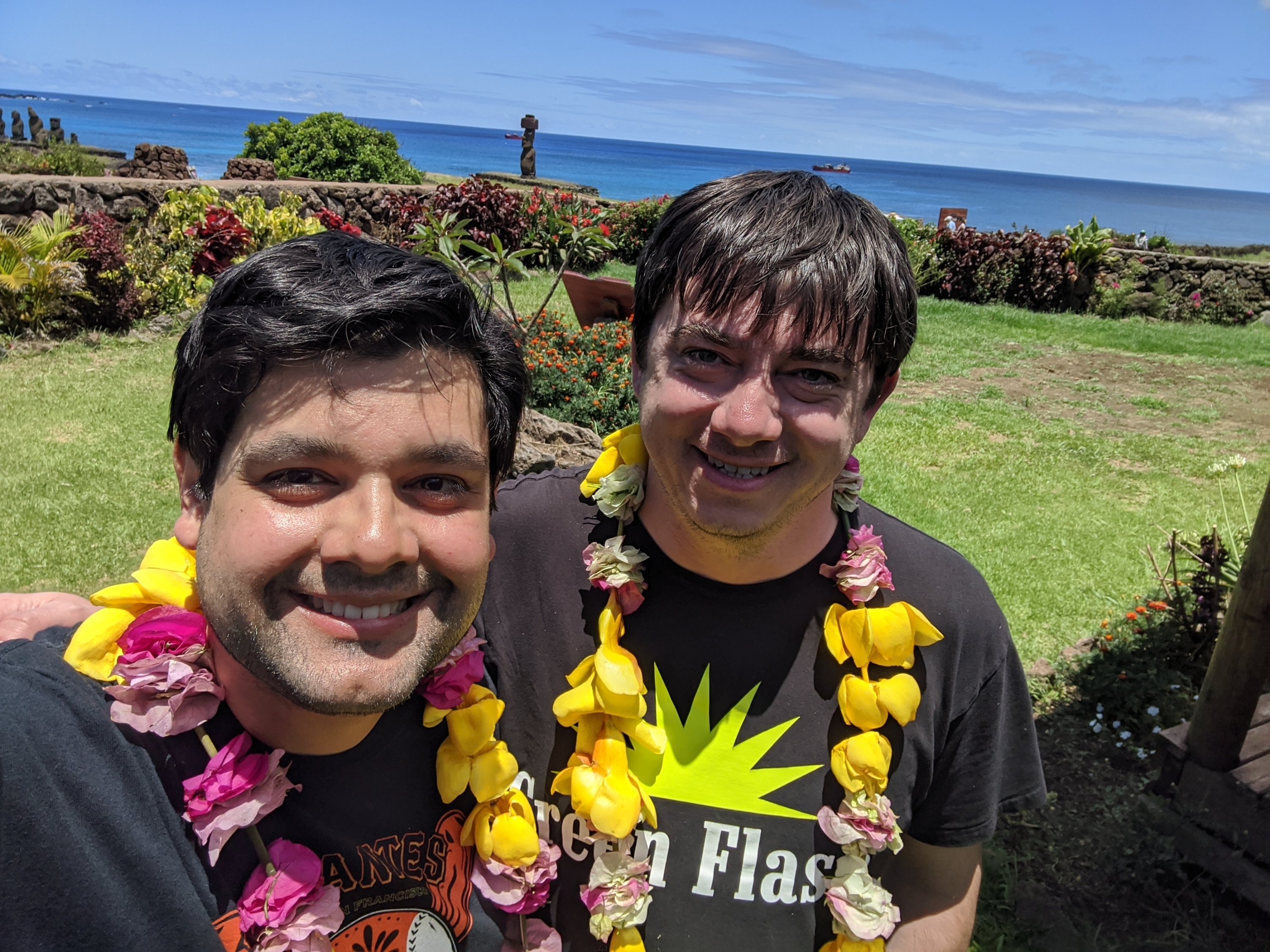 The next morning it was off to Easter island (Rapa Nui.) Being at the airport hotel must have made us overconfident, because we started off running late and missed the window to check our bags. Luckily we had stashed one bag at the hotel and our other bags worked as carry-on in a pinch. We did have to race through the airport, and immigration for some reason, despite not leaving the country, carrying all of our bags, but we made it, with me swearing “never again.”
